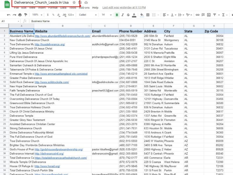 Deliverance Church Leads USA – Data Entry